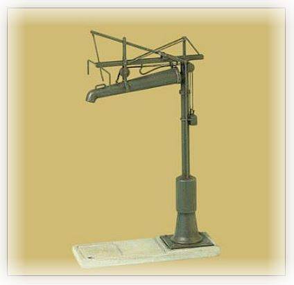 Waterkraan voor het bijvullen van de watervoorraad van stoomlocomotieven. Deze filigrane scharnier-waterkranen met draaibaar bovenstuk zijn met een externe verwarming uitgerust. 2 druiproosters zijn eveneens aanwezig.