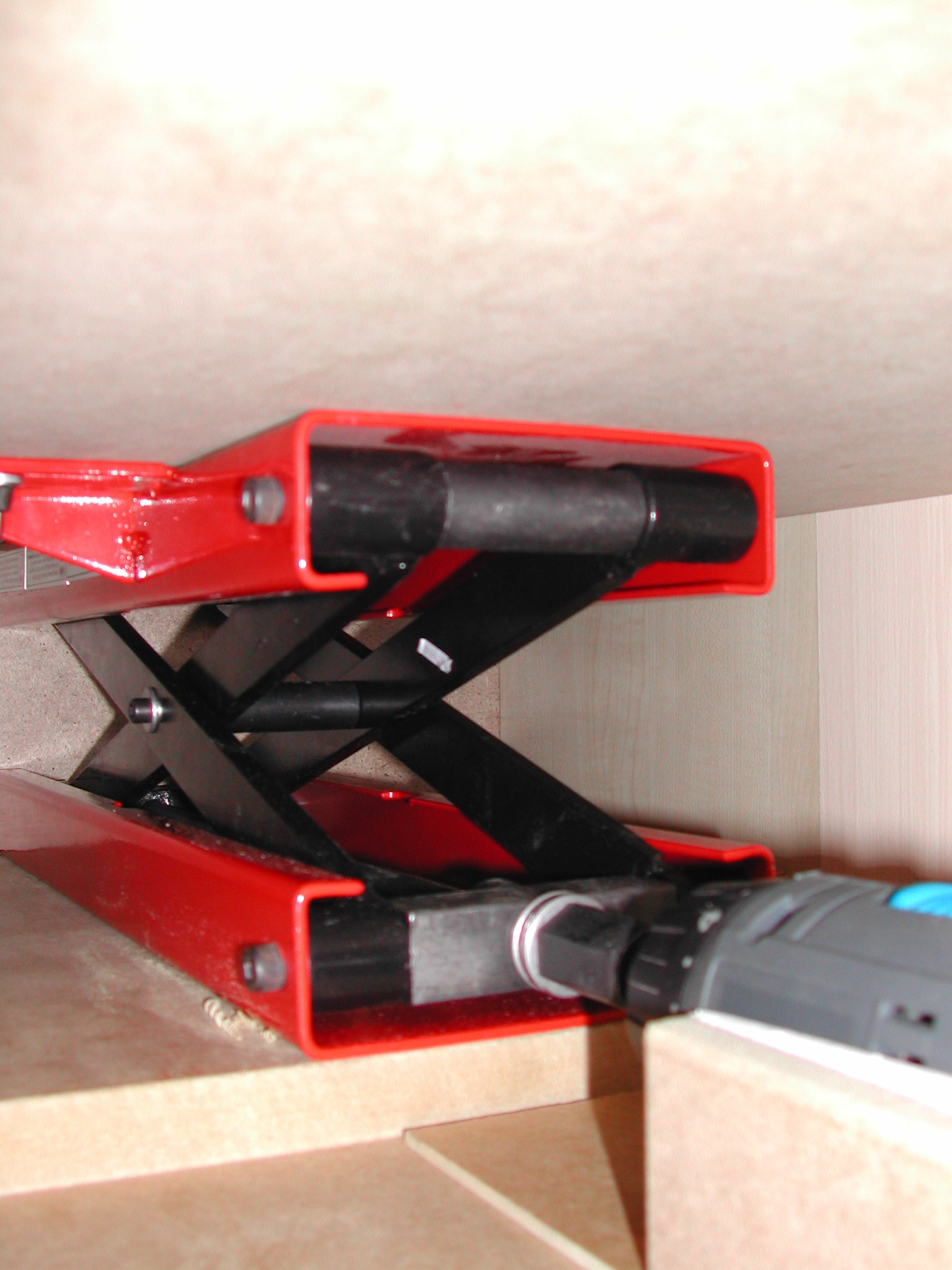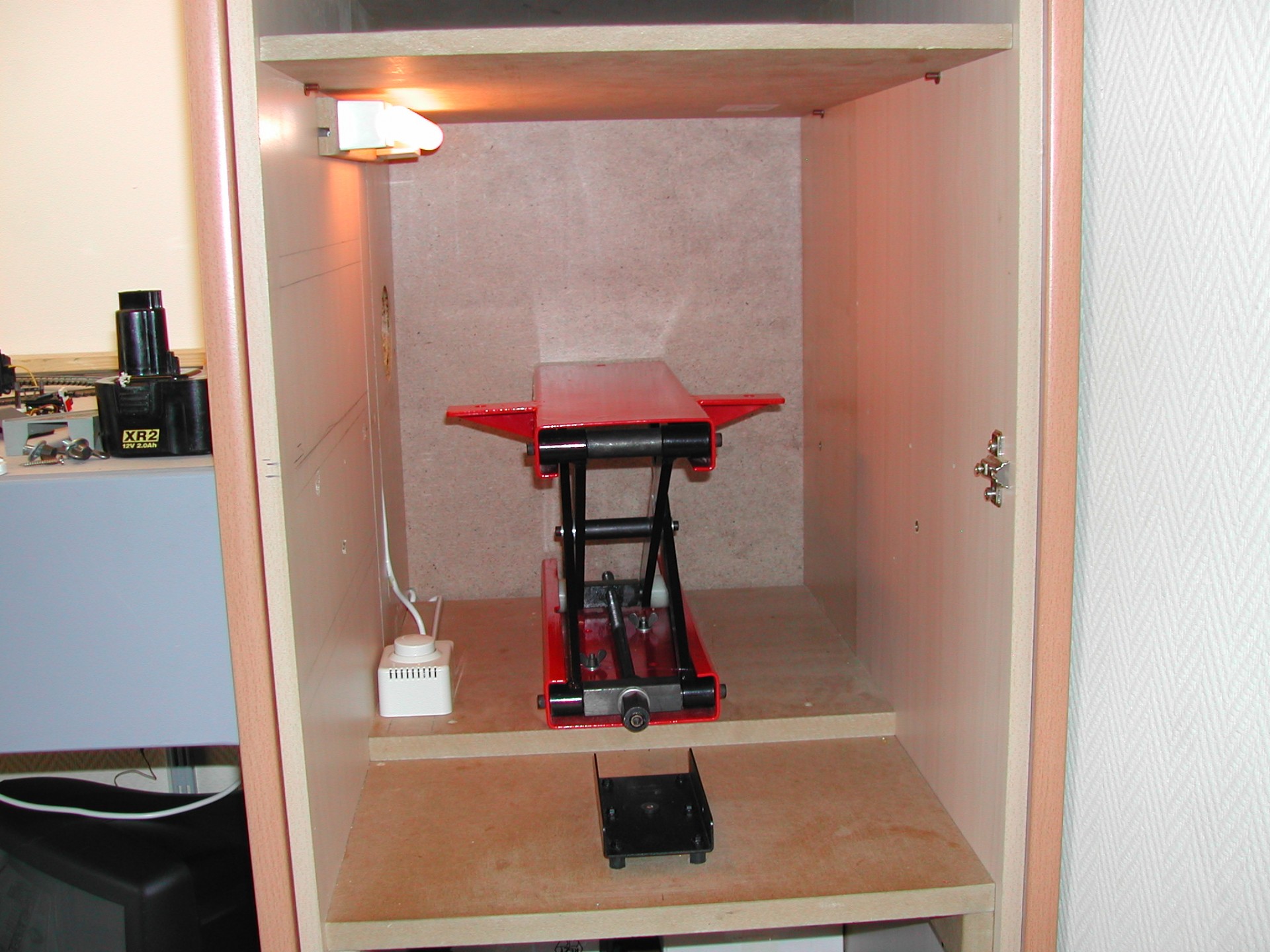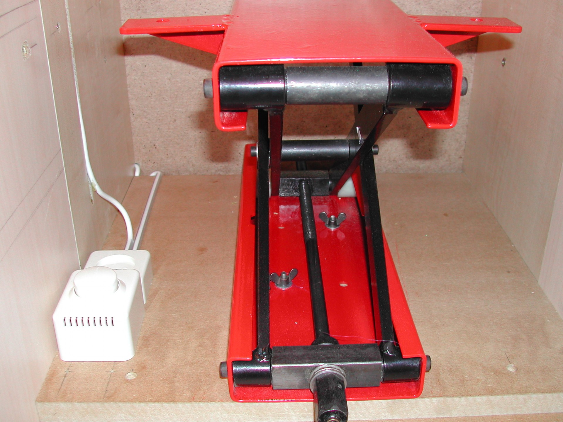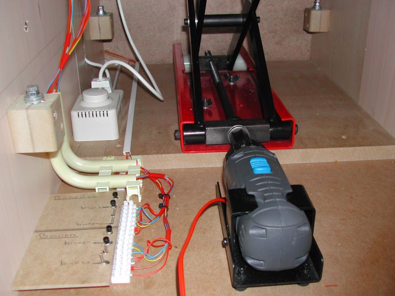 De lift in de hoogste stand. Links achter is de verstelbare aanslag