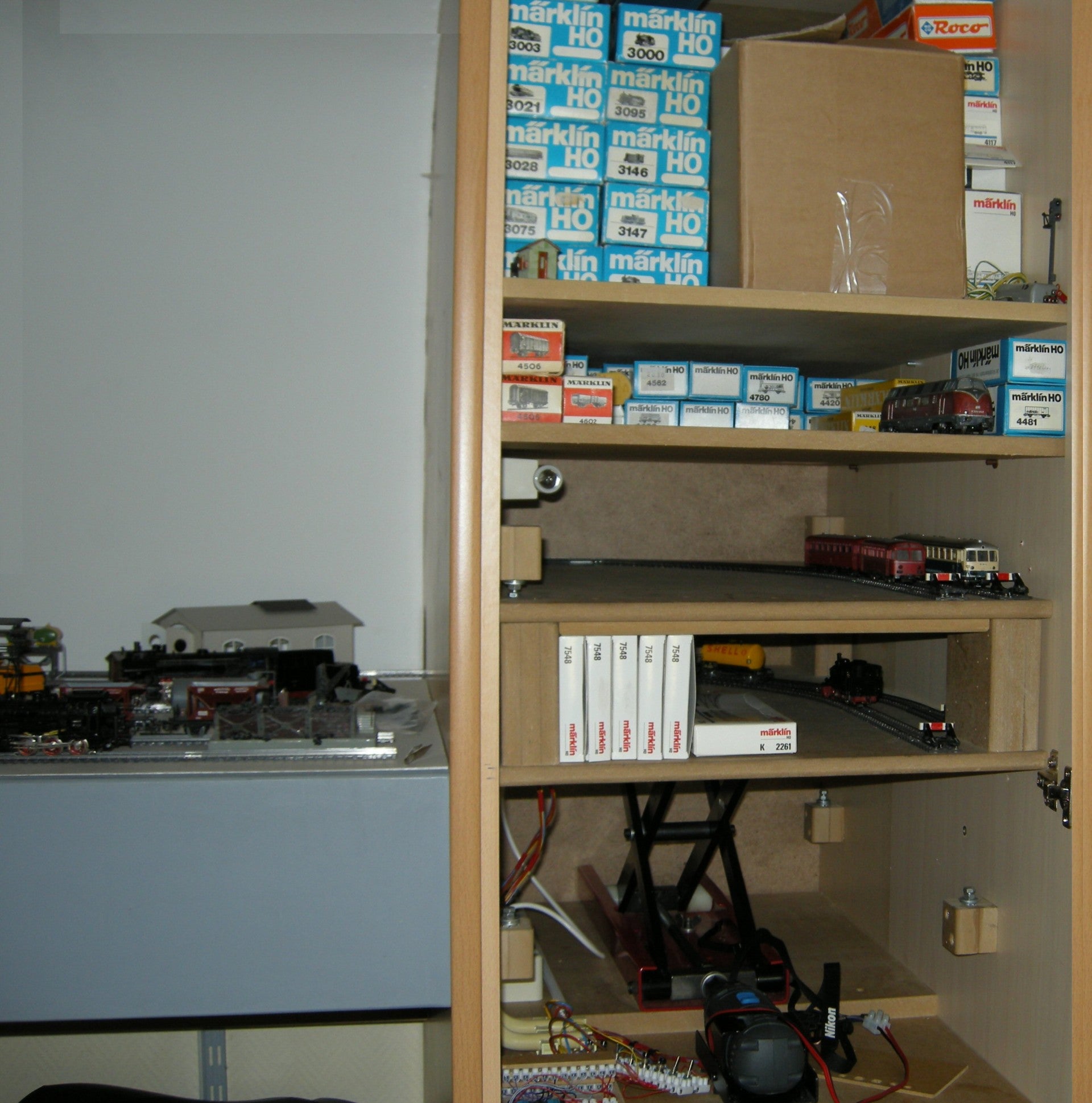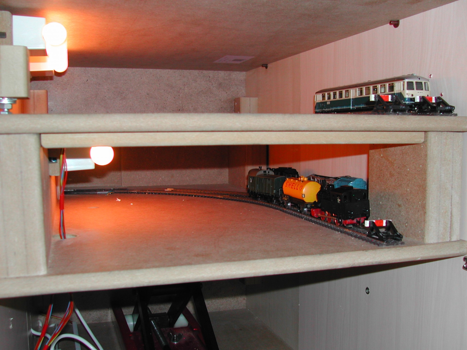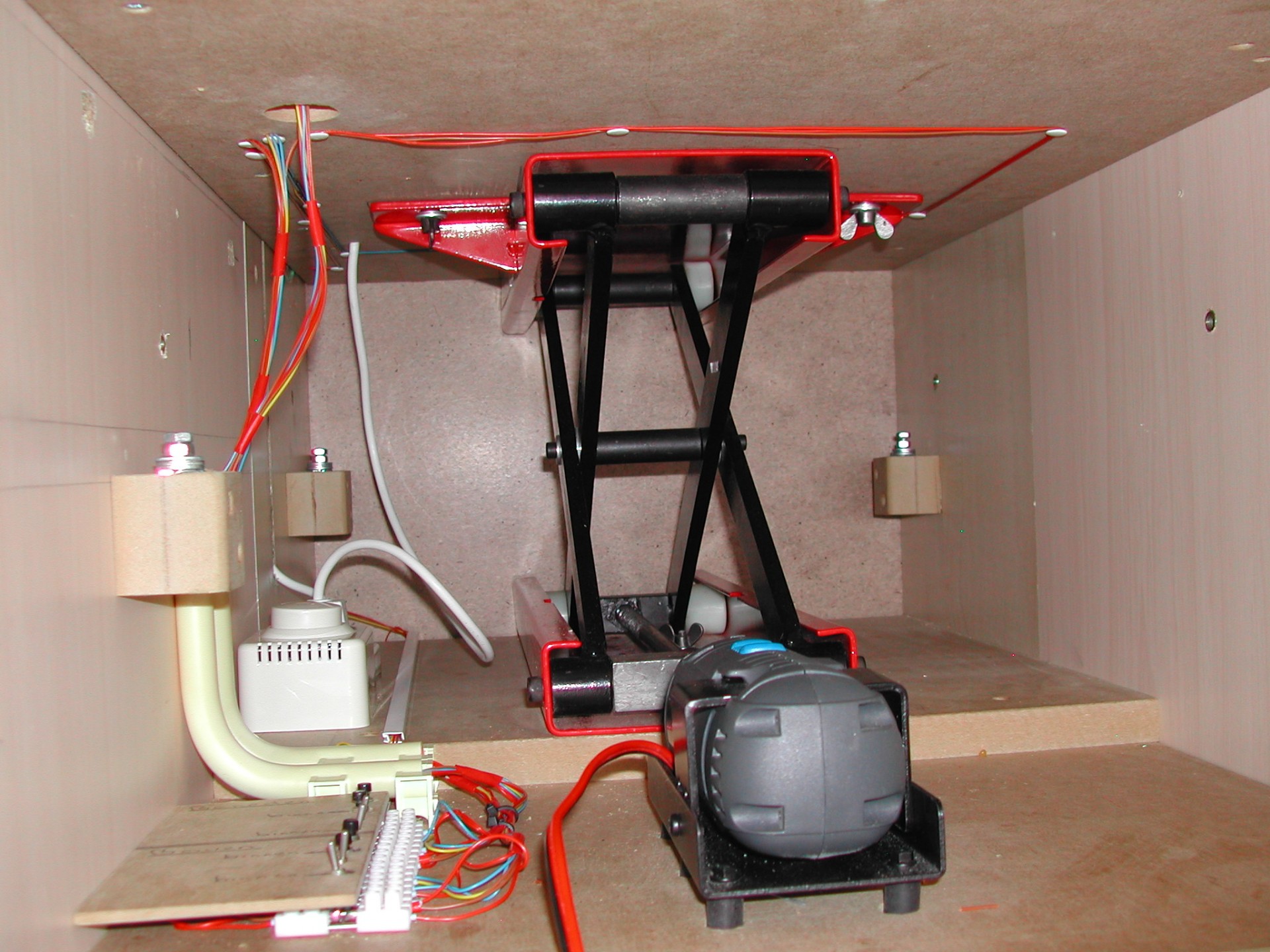 De lift in de hoogste stand. Links achter is de verstelbare aanslag